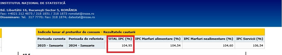 În comunicatul dat de INS în ianuarie 2025 rata inflației se spune că a fost de 5%.